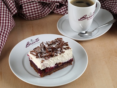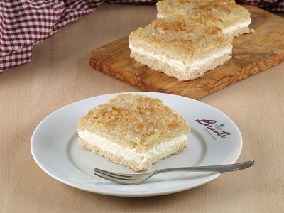 Mit täglich frisch gekochtem, deutschen Vanille-Butterkrem und leckerem Butter-Sahne-Mandelguss. Ein echter Genuss!